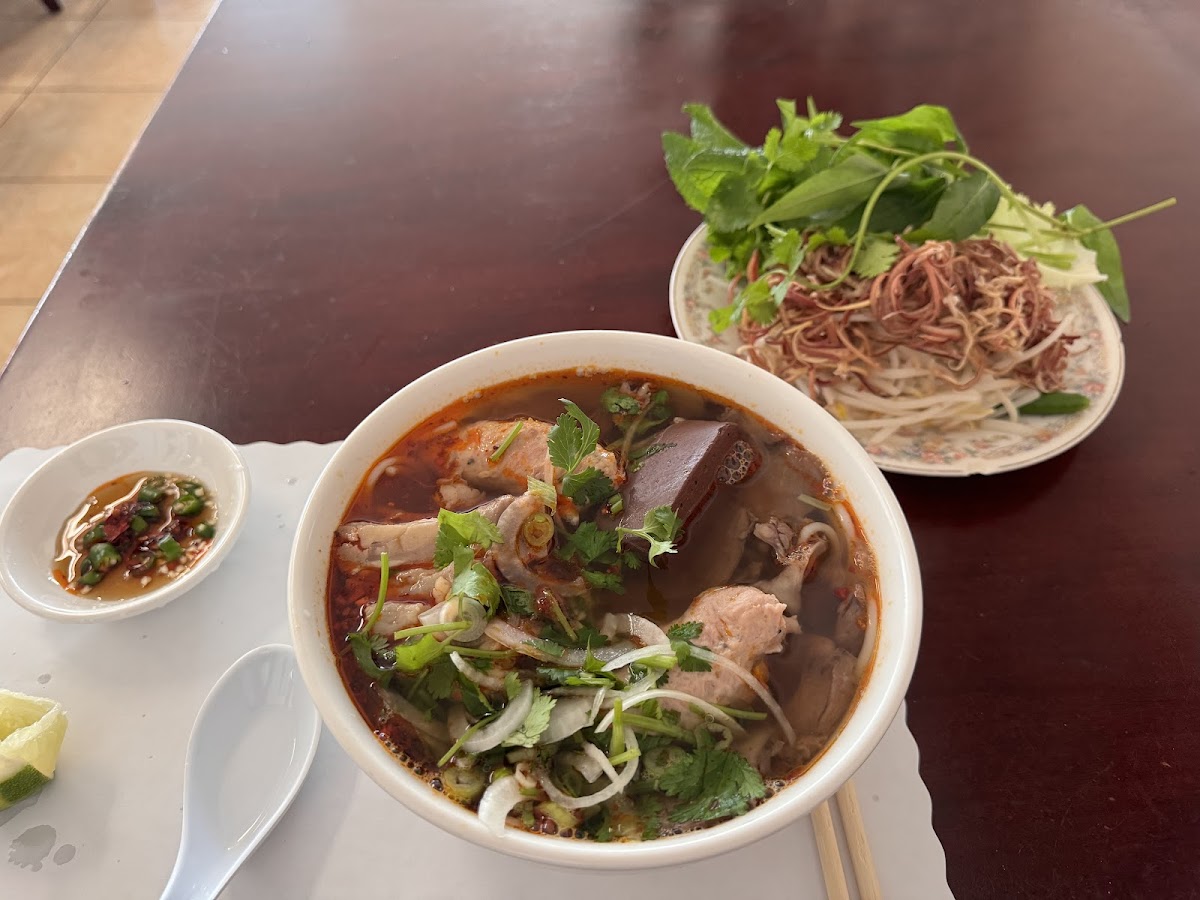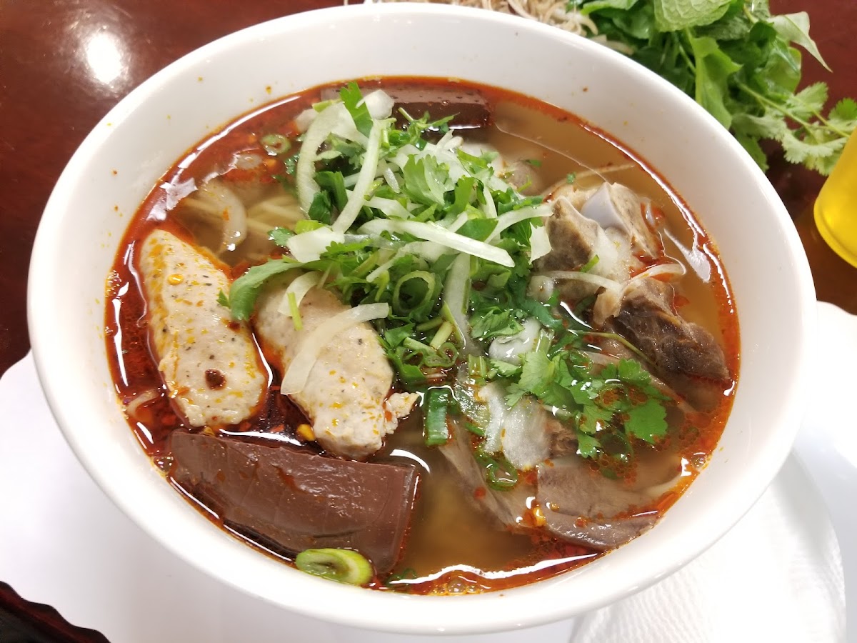 Bún bò Huế is as average as other restaurants. But the special point is FRESH VEGGIES, so fresh and plenty. The server comes to ask if you need more veggies. That is FIVE stars for amazing services. Normally, Vietnamese restaurants do not know how to train the servers to serve the customers. But this restaurant has got 10 points for service.