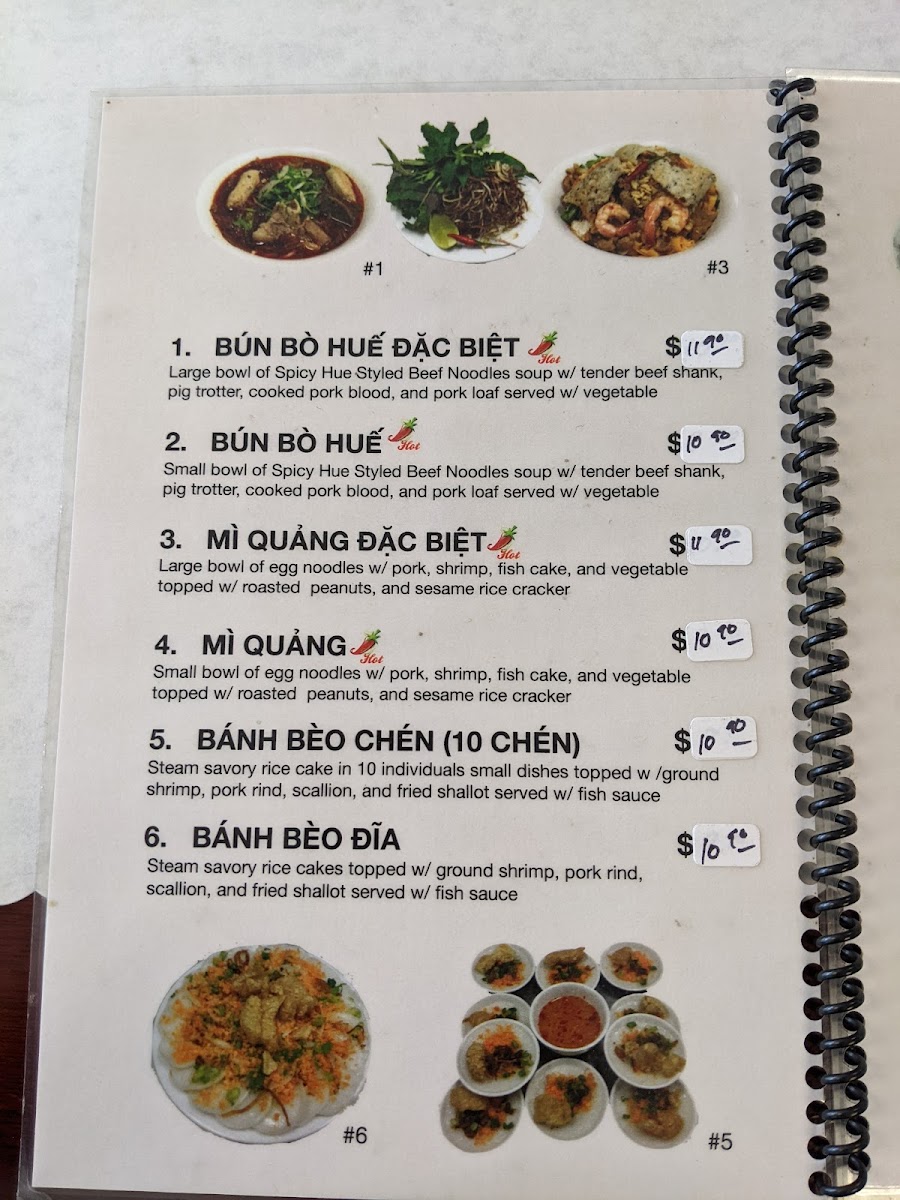 The menu highlights include well-loved items such as Bún Bò Huế Đặc Biệt, a rich and spicy beef noodle soup that warms the palate, and delicate steamed dishes like Bánh Bèo and Bánh Bột Lọc. Freshness is a key part of the experience here, especially with generous servings of crisp vegetables that accompany many noodle soups, adding a light contrast to the rich broths.