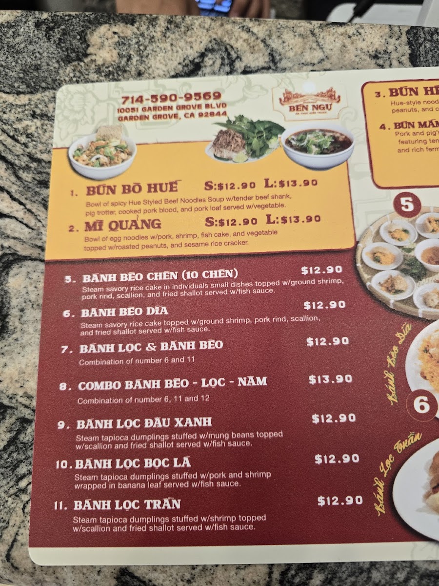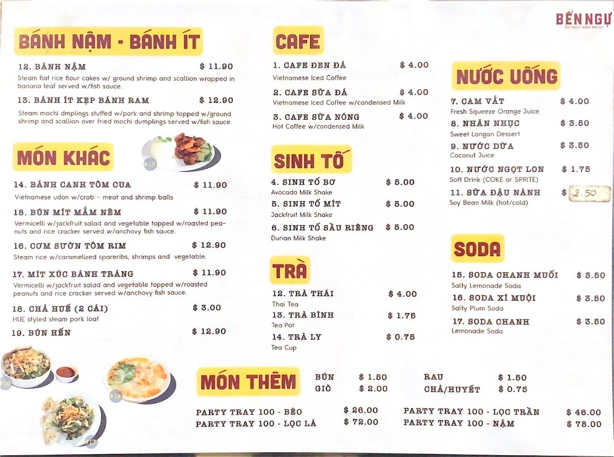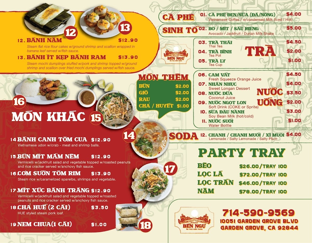 Bến Ngự Restaurant offers a menu rooted in authentic Vietnamese flavors, focusing on hearty, comforting dishes that fit naturally into casual dining moments. The selection feels approachable yet thoughtfully crafted, making it a good choice whether you’re stopping by for a satisfying lunch or a relaxed dinner with family and friends.